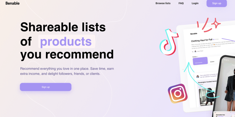 Benable Benable is a platform that allows users to create shareable lists of items they recommend, making it an ideal tool for affiliate marketers. By using Benable, affiliate marketers can compile all their recommendations into visually appealing and organized lists, making it easy for their followers to access and purchase the products they endorse.